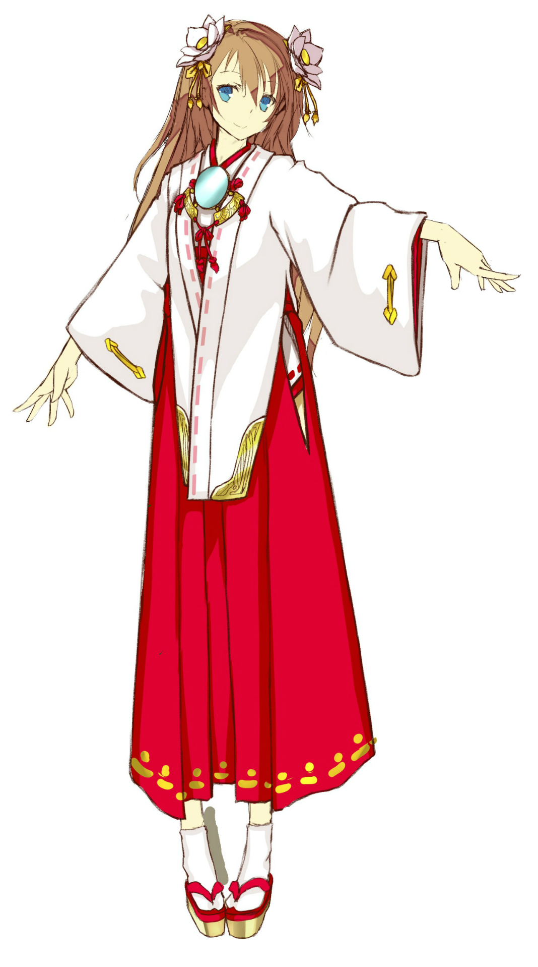 これはもうおぬしもすでに知っておるじゃろ。巫女服じゃ。巫女服の“すいきょう”と、ヘッドアクセサリーの“れんか”じゃな。水 がモノをありのままに映すように、物事をよく観察して真情を見抜き、人の模範となれ。といったところかのう。ある意味、とうだいもりと端末越しにおるおぬ しの関係にピッタリとも言えるかもしれんな。