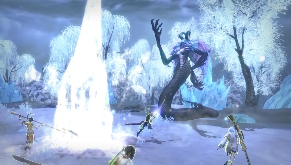 美しい女性の上半身と蛇体の下半身を持った大型“鬼”。