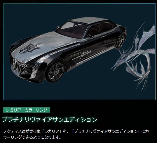 デラックスエディションは13996円、通常版に加えてスチールブック、映画「KINGSGLAIVE FINAL FANTASY」、ゲーム内コンテンツとして車のカラーリング「プラチナリヴァイアサンエディション」、衣装「ルシス王の礼服」が追加。
