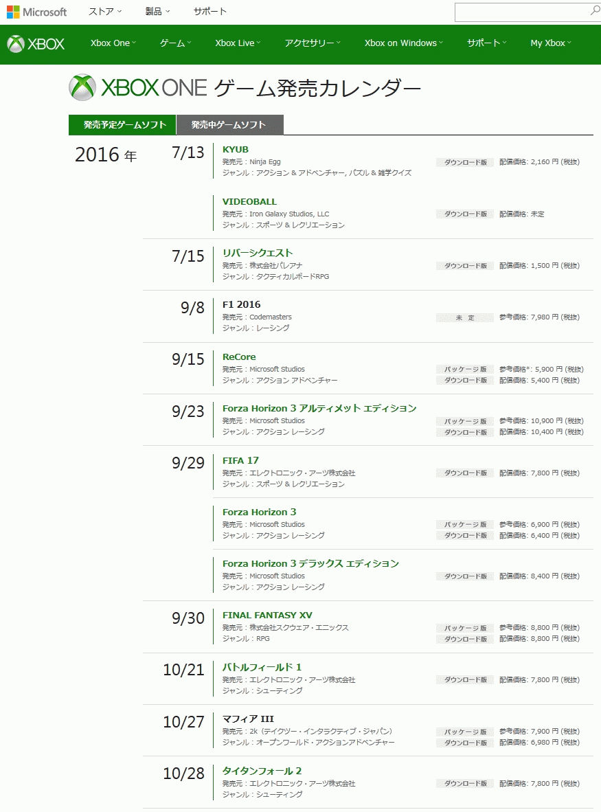 [MS - Xbox.com/jp-jp - Xbox One ゲーム発売カレンダー]