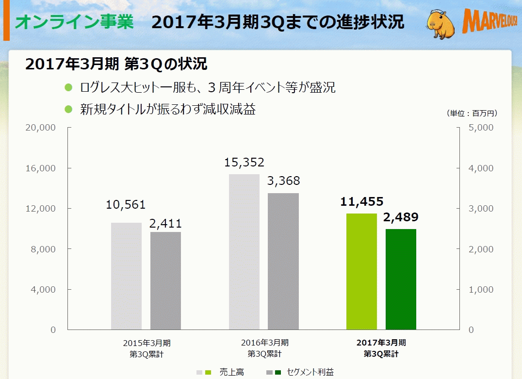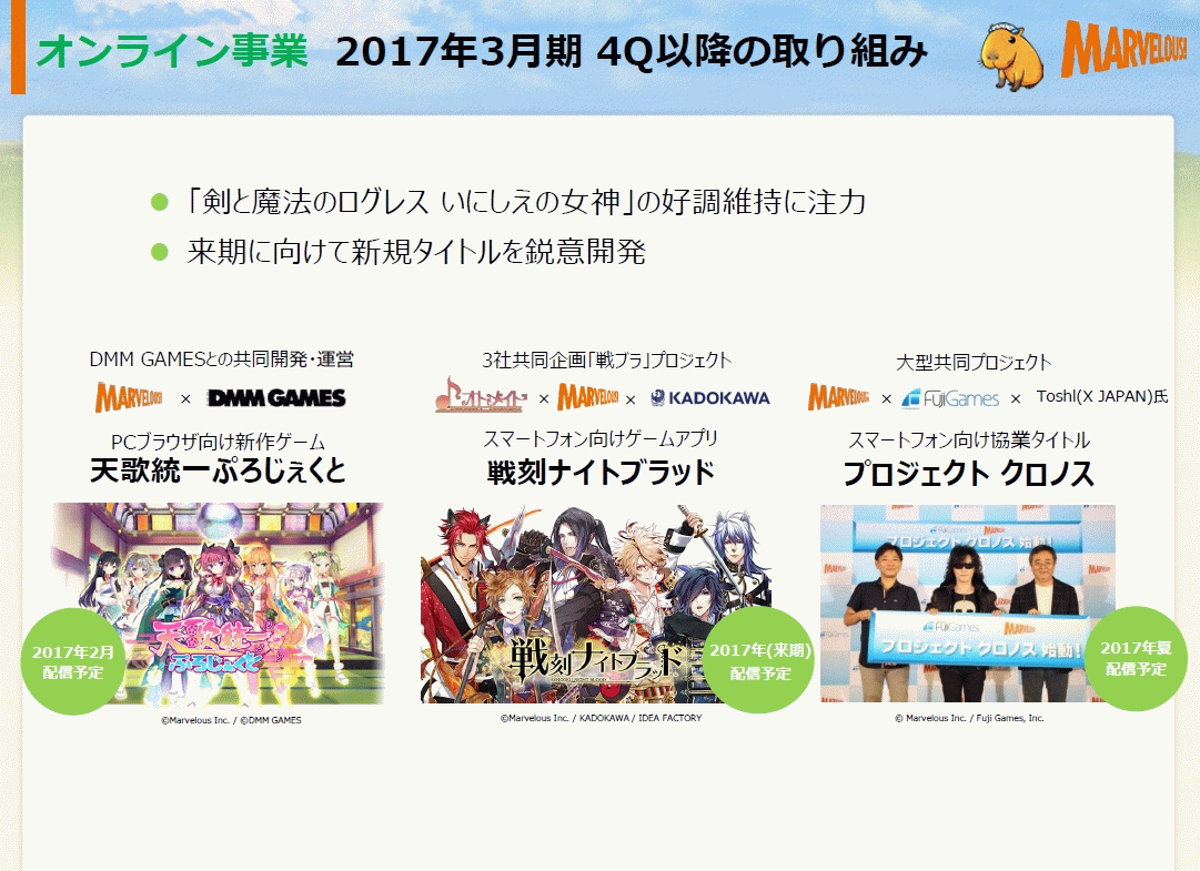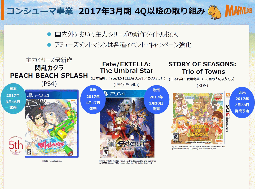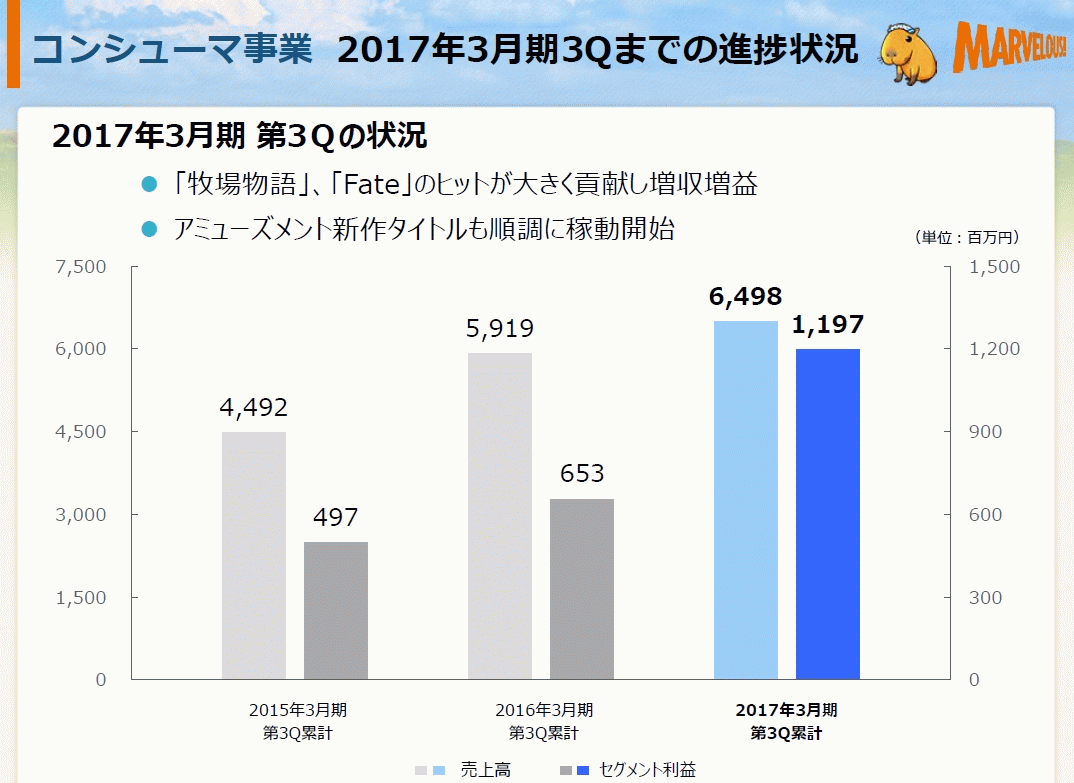 [マーベラス:平成29年3月期 第3四半期決算短信〔日本基準〕(連結) / 2017年3月期 第3四半期 決算説明資料](pdf)