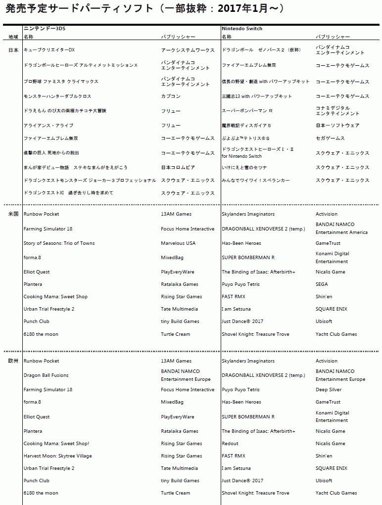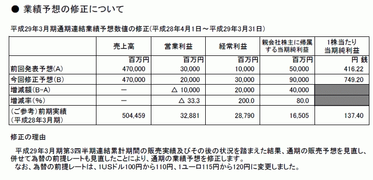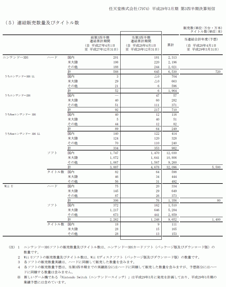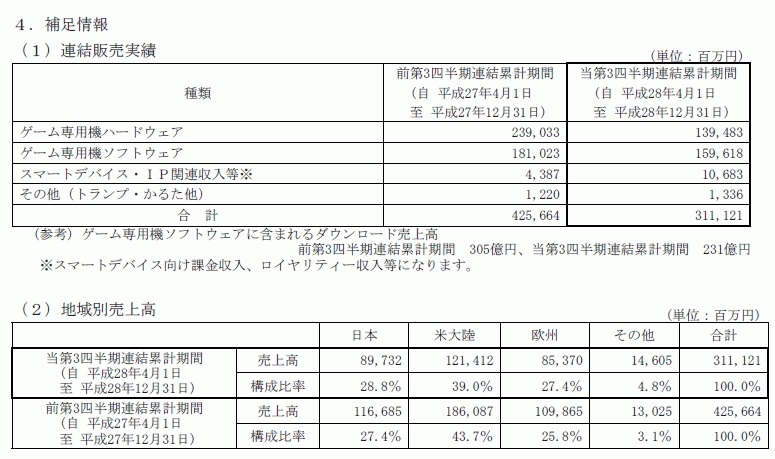 [任天堂:平成29年3月期第3四半期決算短信〔日本基準〕(連結) / 営業外収益(為替差益)の計上に関するお知らせ / 通期業績予想及び配当予想の修正に関するお知らせ / 決算参考資料](pdf)