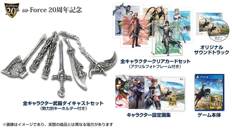 「一騎当千BOX」はω-Force 20周年記念を謳い、上記特典に加えて全キャラクター武器ダイキャストセットが付属。