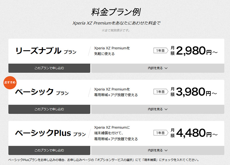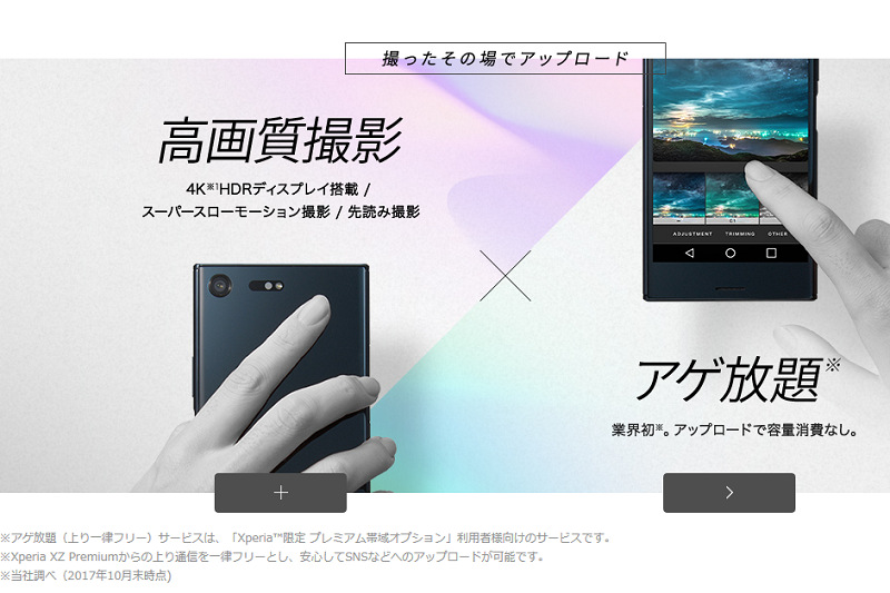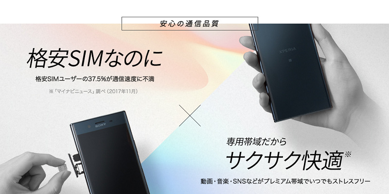 nuroモバイル×XperiaはXperia XZ Premiumをセットで販売、専用の帯域が用意されるプレミアムオプションがあり、初年度は税抜き2980円より…
