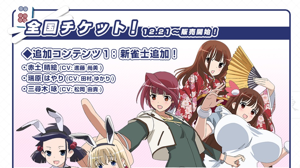 この他、無料DLCとしてキャラクター「藤田靖子」、衣装「原村和 バニー」が同日より配信予定とも発表されていますね。