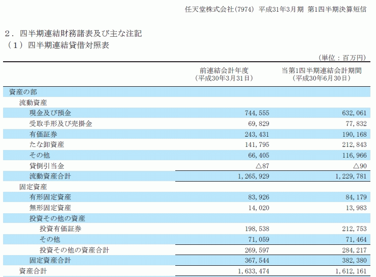 [任天堂: 平成31年3月期第1四半期決算短信〔日本基準〕(連結) / 決算参考資料](pdf)