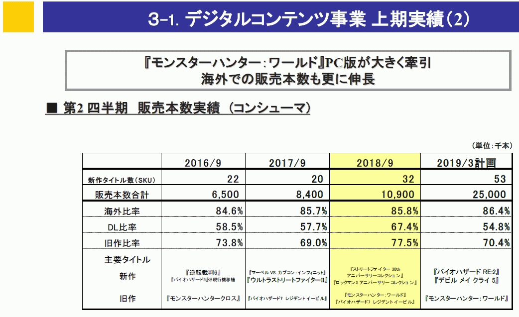 誤解する人も多いと思いますが、カプコンの決算でいうDLCは追加コンテンツだけでなく本体…ゲームそのものも含まれています。