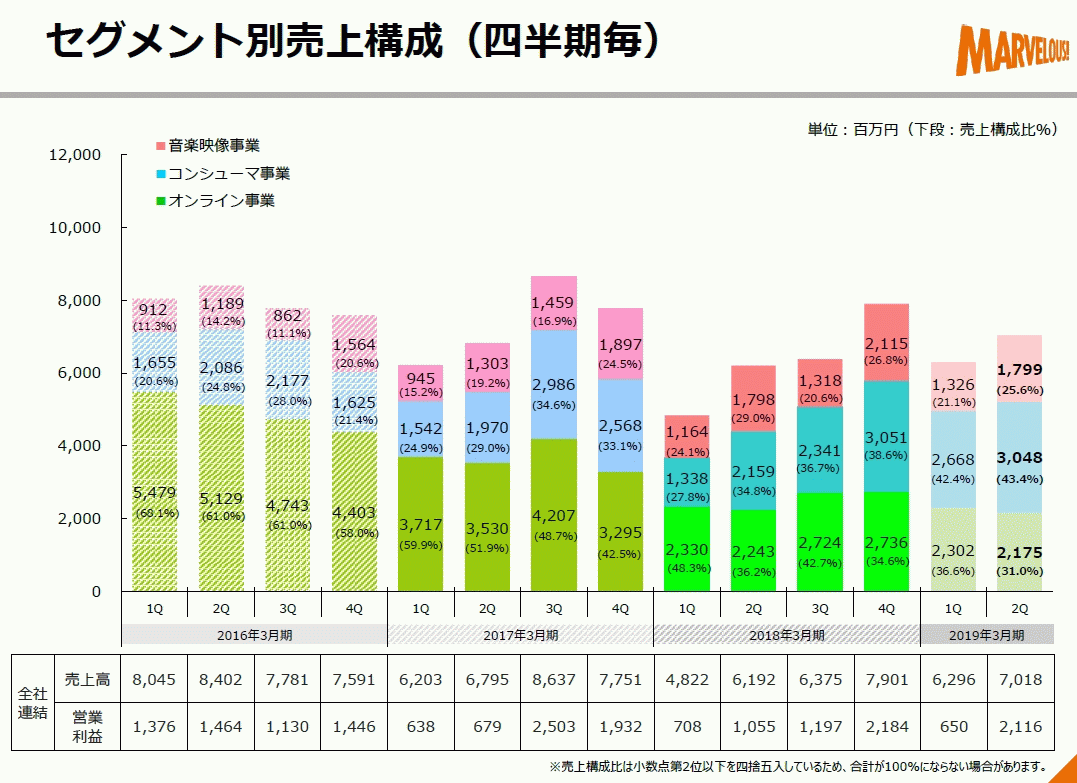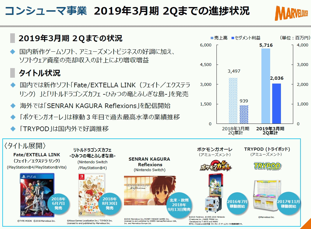 [マーベラス: 2019年3月期 第2四半期決算短信〔日本基準〕(連結) / 2019年3月期 第2四半期 決算説明会資料](pdf)
