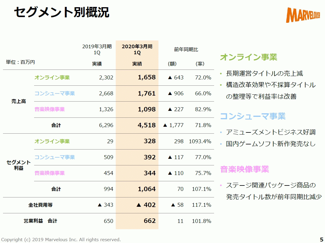 [マーベラス: 2020年3月期 第1四半期決算短信〔日本基準〕(連結) / 決算説明資料](pdf)