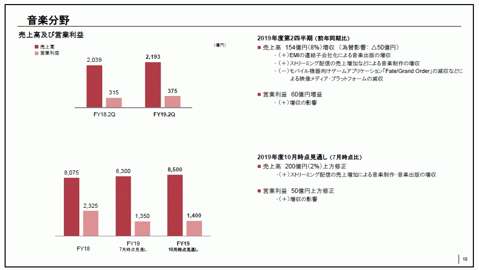 音楽分野については、音楽出版は物理メディアが横這いでデジタル売上高が伸長。