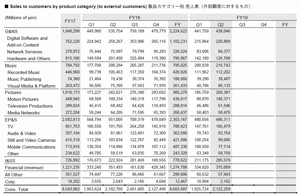 [ソニー: 2020年3月期 第2四半期決算短信〔米国基準〕(連結) / 決算説明会資料 / 補足資料](pdf)
