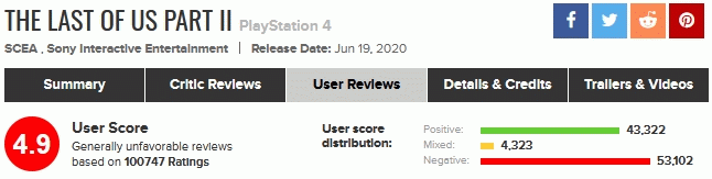 [metacritic: Read User Reviews and Submit your own for The Last of Us Part II on PlayStation 4]