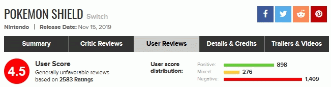 [metacritic: Read User Reviews and Submit your own for Pokemon Sword on Switch / Read User Reviews and Submit your own for Pokemon Shield on Switch]