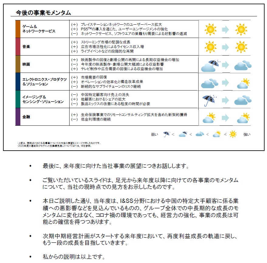 [ソニー: 2020年度 第2四半期 業績説明会 / スピーチ原稿]