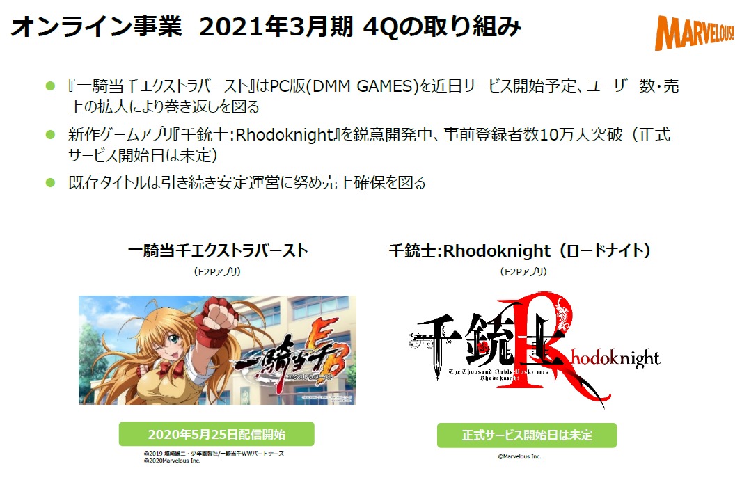 『一騎当千エクストラバースト』につきましては、プロモーション効果などにより新規ユーザーが増加しながらも