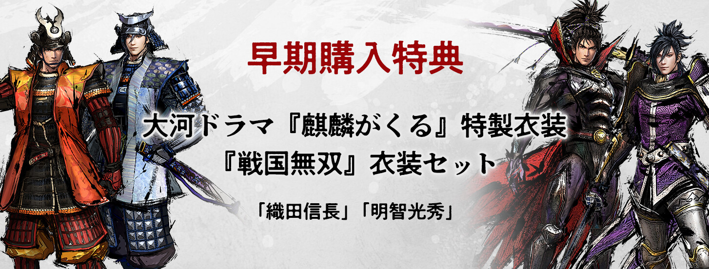 早期購入特典は大河ドラマ「麒麟がくる」及び「戦国無双」の織田信長&明智光秀衣装セット。