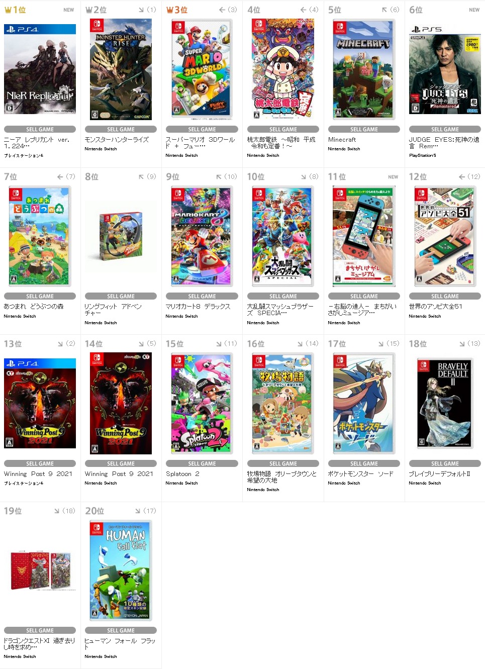 首位になったのは新作の「NieR Replicant ver.1.22474487139...」ですね、ひょっとしてこれオリジナル版より売れるのでは?
