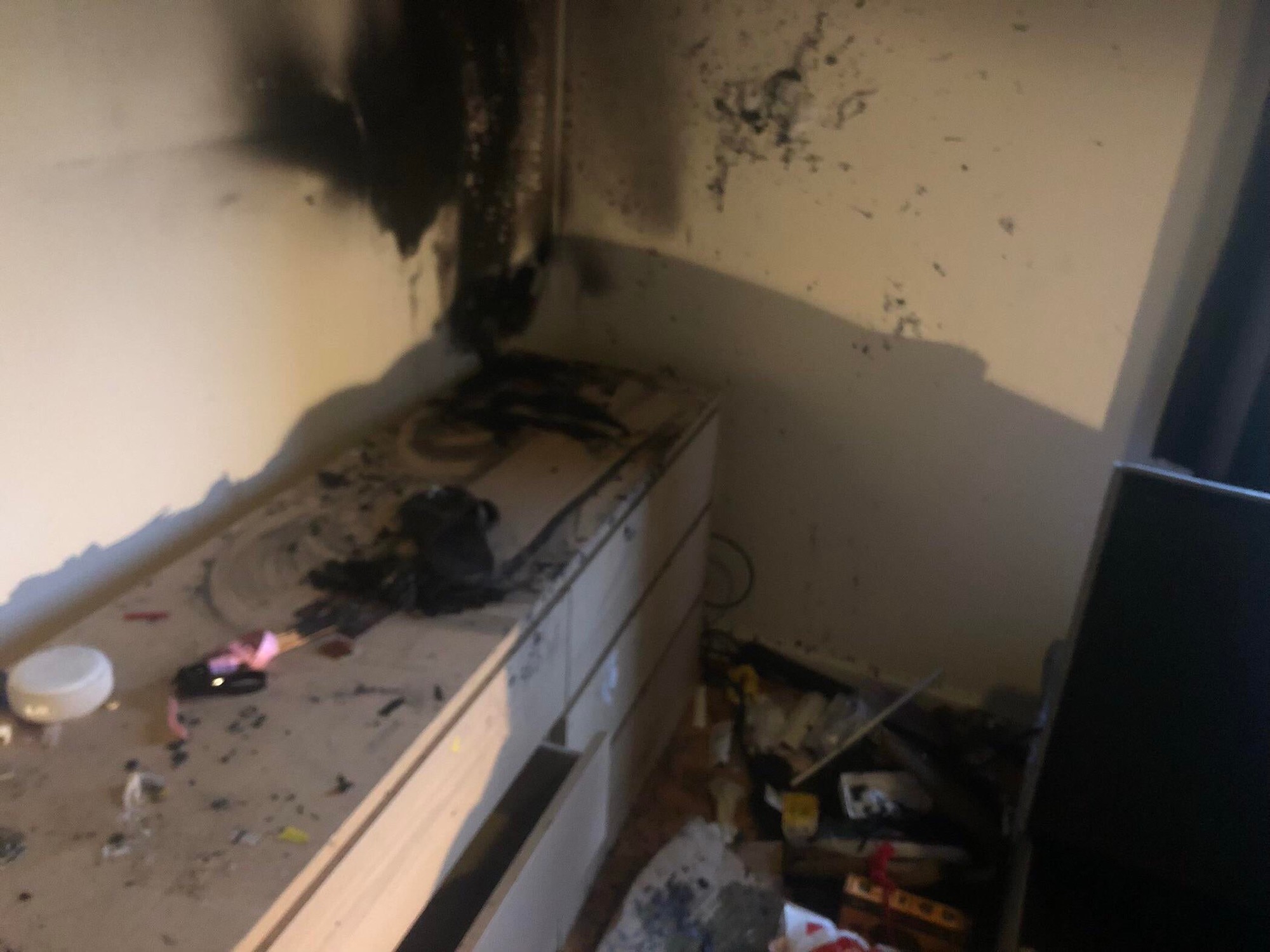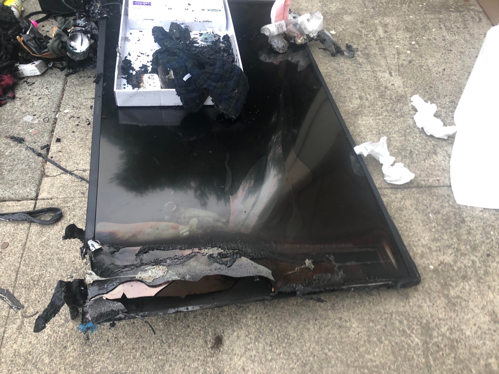 これに関しては現場で当初テレビがこの棚に乗っているか壁に掛けられていてそのXSXの爆発的火災に巻き込まれた物として、2台とも右側が焼けているのはどうした事かという突っ込みがあってもおかしくはない所ですけど…