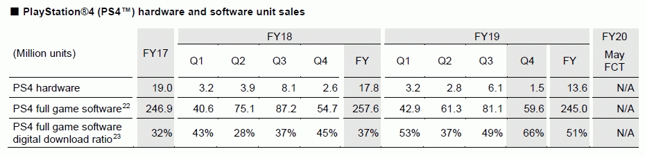 前作が発売されたFY18Q3におけるダウンロード比率(本数)は37%だったのに対し、直近の決算期におけるダウンロード比率は71%と大幅にデジタル比率が高まっています。