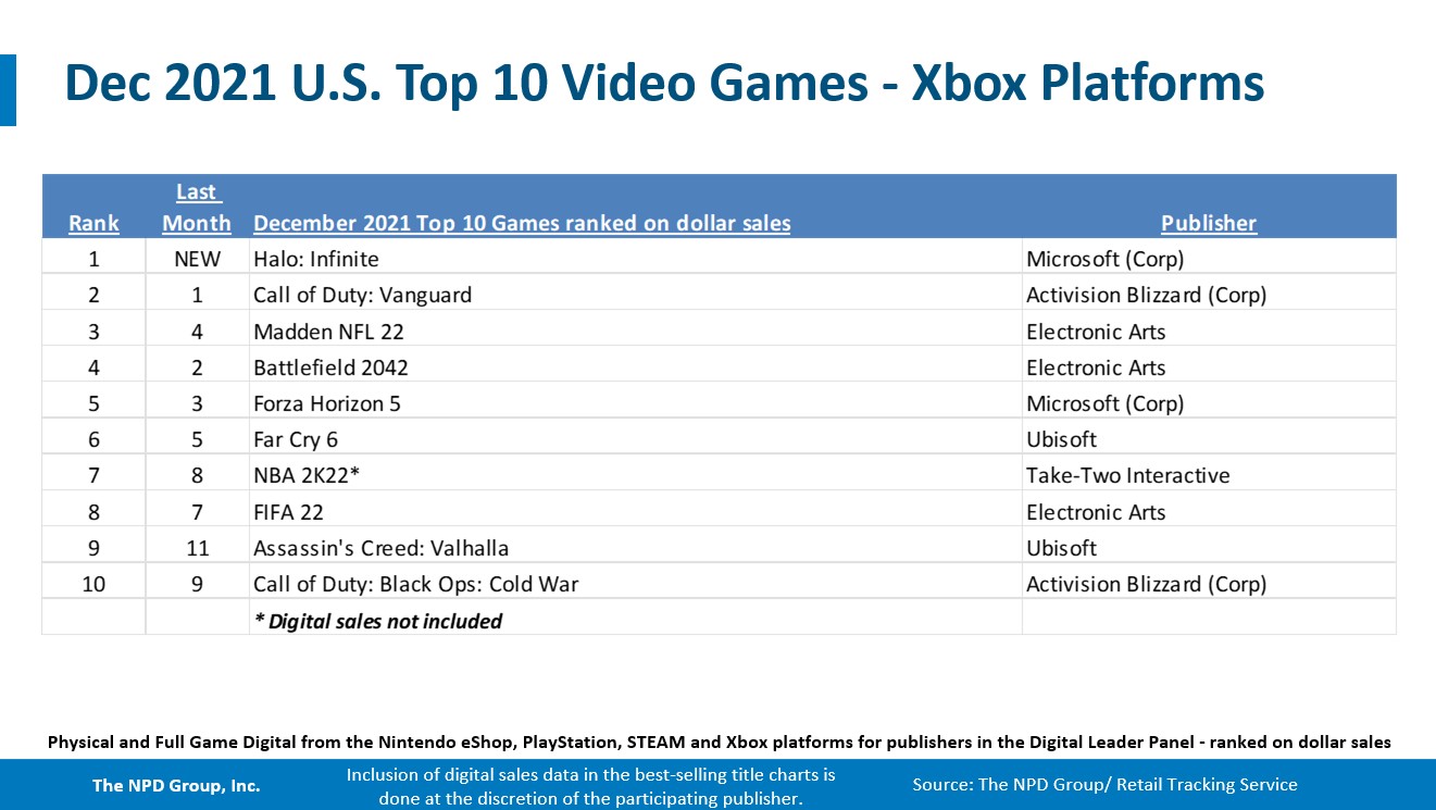 Xboxプラットフォームの12月トップはHalo: Infinite。