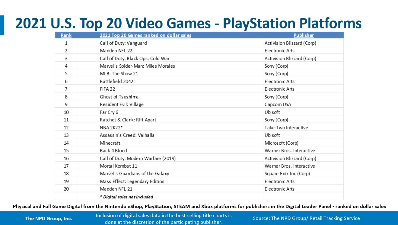 あとSIEタイトルの「MLB The Show 21」がランクインしていますが、こちらは事実上MLBがパブリッシャとなっているので特殊な例ですね。