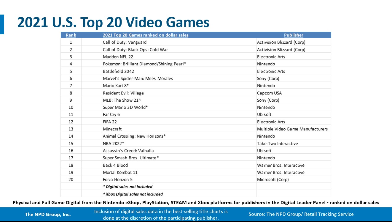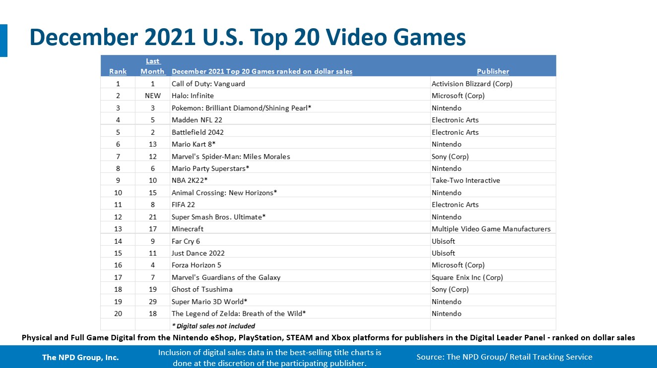 December 2021 US NPD THREAD - December 2021 consumer spending across video game hardware, content and accessories fell 1% when compared to a year ago, to $7.5 billion. 2021 consumer spending reached a record $60.4 billion, 8% higher when compared to 2020. pic.twitter.com/T5J3sjKIlG