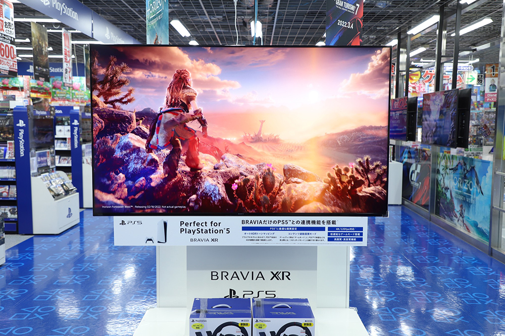 この写真が秋ヨドのPSコーナー向かって左側入り口から入って右手を見た時のもので、現在はこのBRAVIAの向かいに「英雄伝説 黎の軌跡」の1/1グレンデル立像が…まだ置いてあるんですかね。
