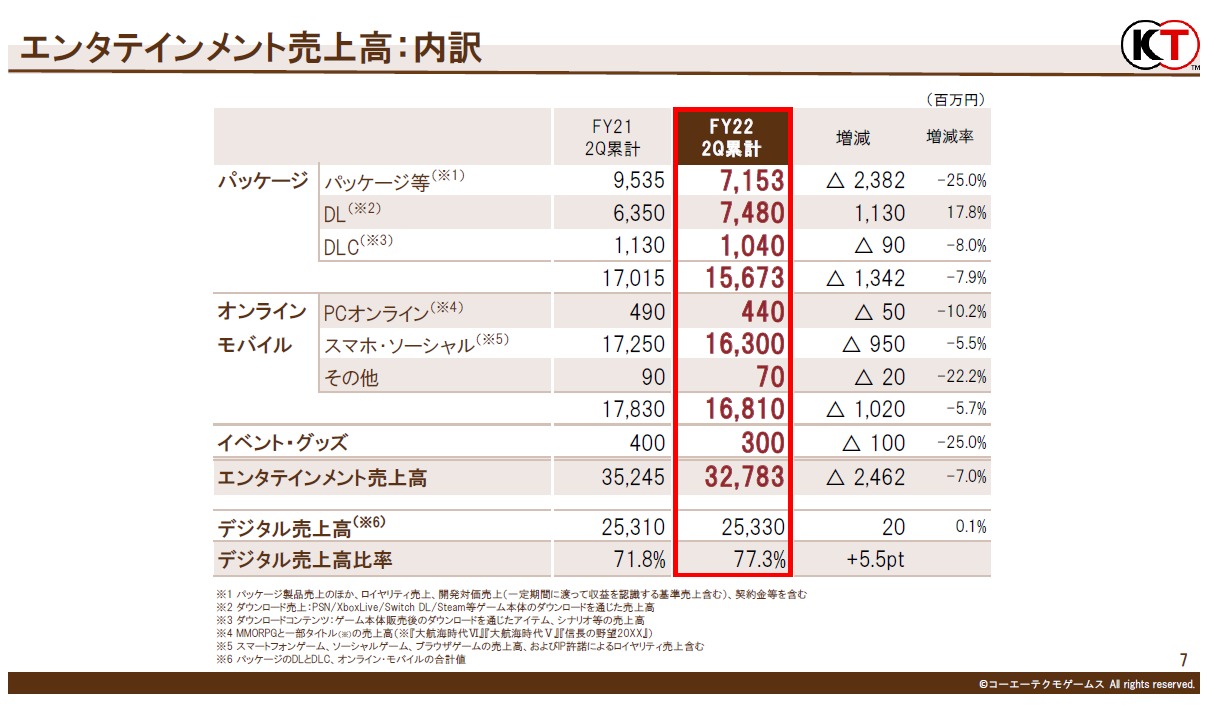 地味にコエテクもゲーム本体の販売においてフィジカルよりデジタルの売上高が大きくなっていますね。