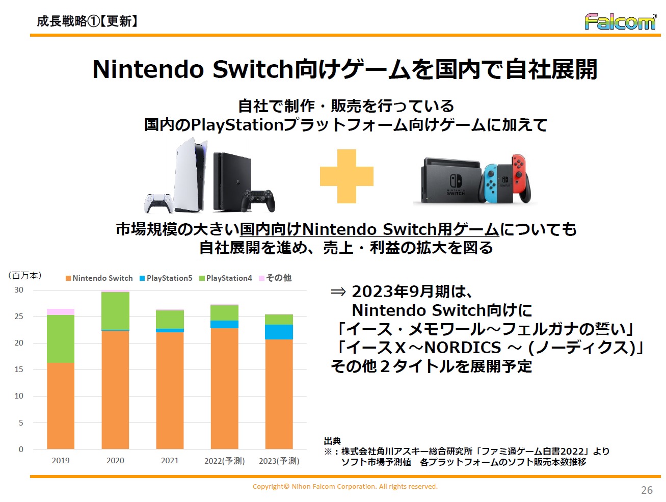 今期(2023年9月期)においてはイースXの他4タイトルを投入予定としているそうです。