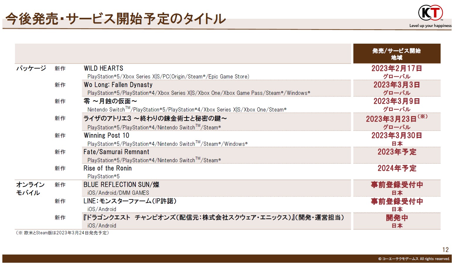 [コーエーテクモHD: 令和5年3月期 第3四半期決算短信〔日本基準〕(連結) / 決算説明会資料 / 通期業績予想の修正に関するお知らせ](pdf)