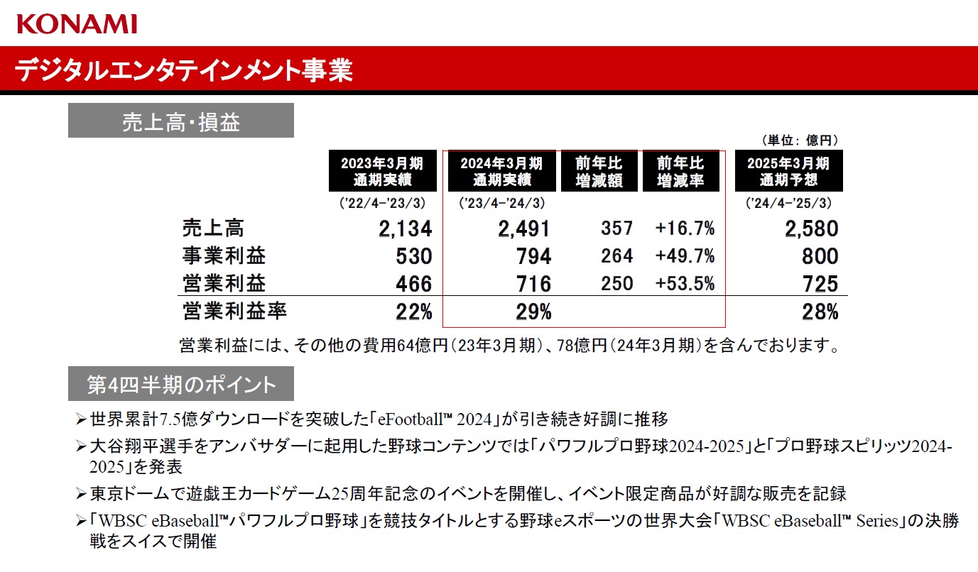 [KONAMI: 2024年3月期 決算短信〔IFRS〕(連結) / 決算発表資料](pdf)