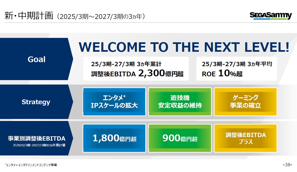 新中期計画として、海外版MD(Genesis)の標語である“Welcom to the Next Level!”を採用。