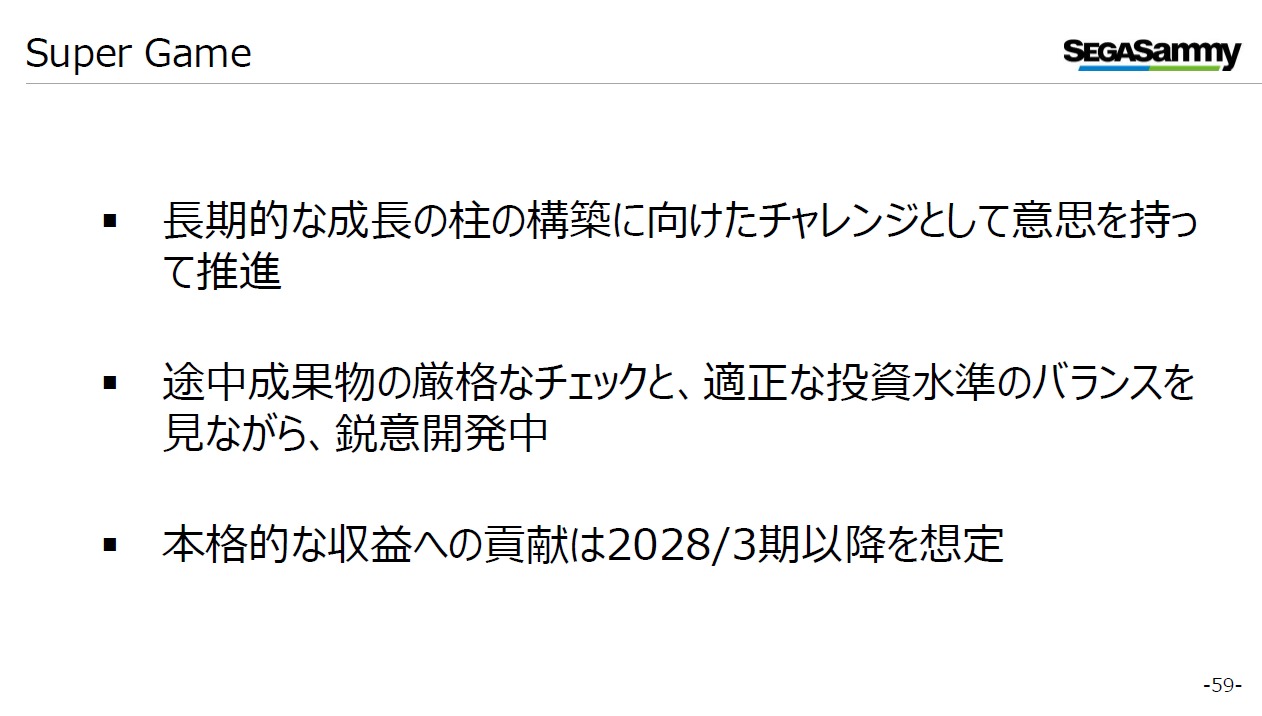 “Super Game”についてはあと三年以上かかる見込みのようです。