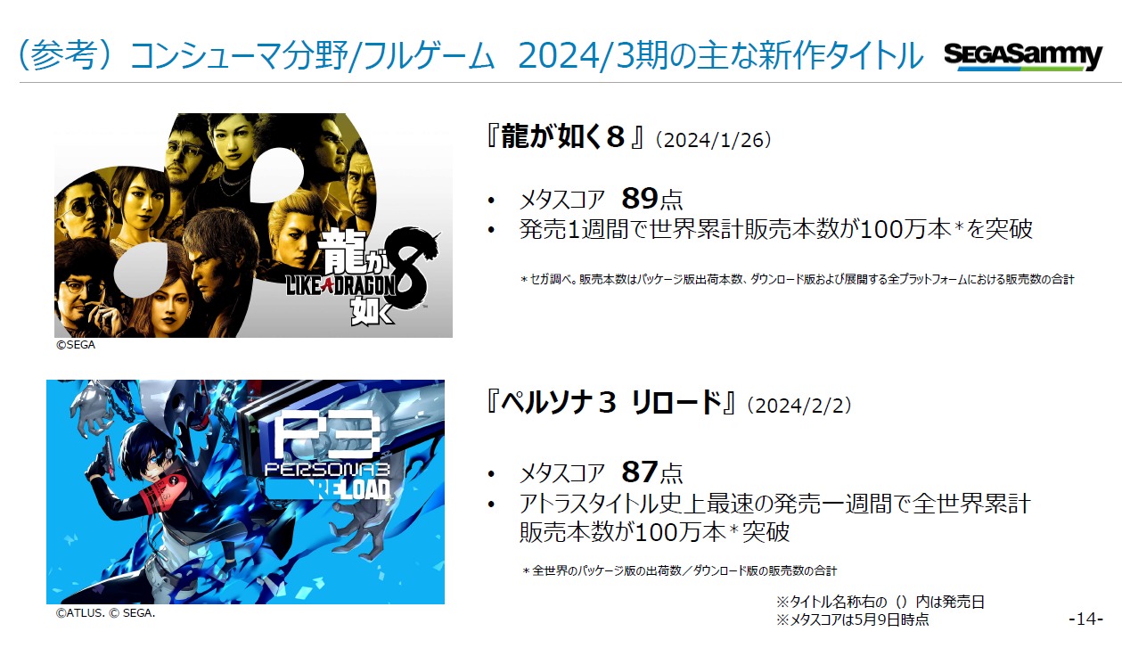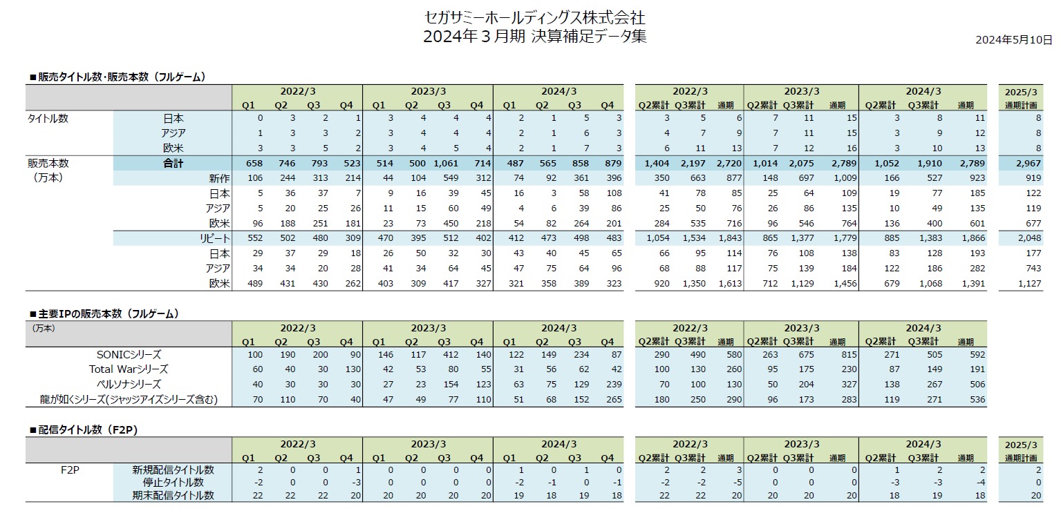 [セガサミーHD: 2024年3月期決算短信〔日本基準〕(連結) / 決算補足データ集 / 決算プレゼンテーション](pdf)
