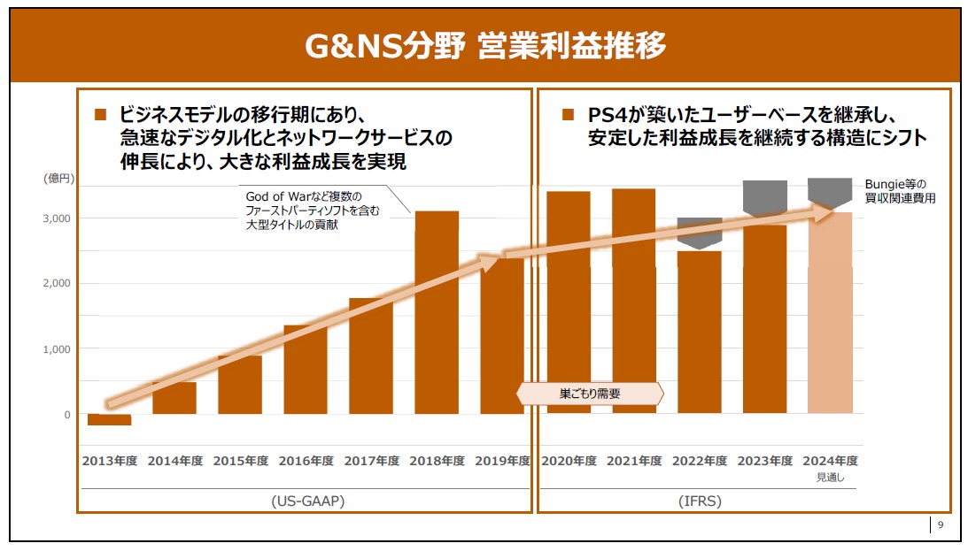 …というとそれを含めての物ではないかと思われそうですが、まず今期見込みのG&NS分野の売上高4.2兆円って、PS4世代の同時期(2018年3月期)の同分野売上高の1.94兆円に比べて軽く倍以上の差が付いているんですよね。