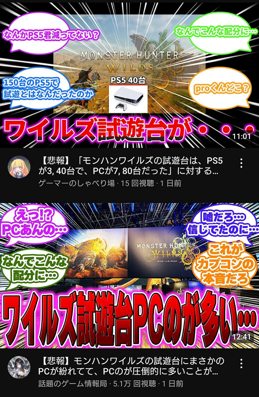 [当ブログ: [ニシ団鳴動]ゲハにおける歪んだ情報ニシのネガキャン“MHワイルズ試遊機の多くはPC”“フレームレートガタガタ”→試遊機はPS5だしフレームレートも安定してた]