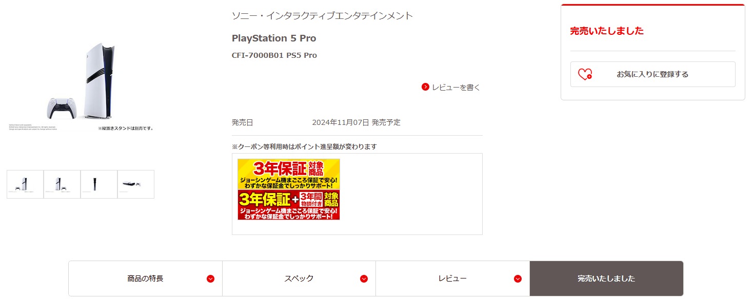 ヨドバシカメラJoshin楽天ブ「PS5 pro買ってください。お願いします」