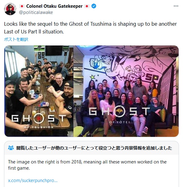 ただし、サッカーパンチ社からゴースト・オブ・ツシマのスタッフの一部が抜け、DEI的雇用が進んでいるのは事実なので、新作に関して不安に思っている人が存在はしてますよ。私も含めてその多くは今のところ様子見ですが。