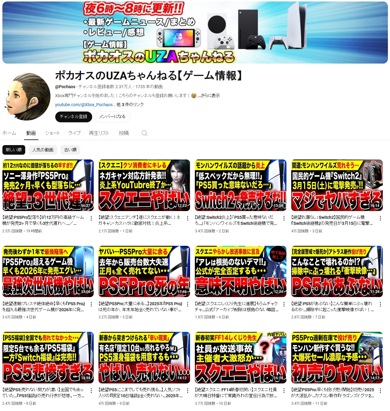 何しろ動画新着順がこの惨状ですからね。