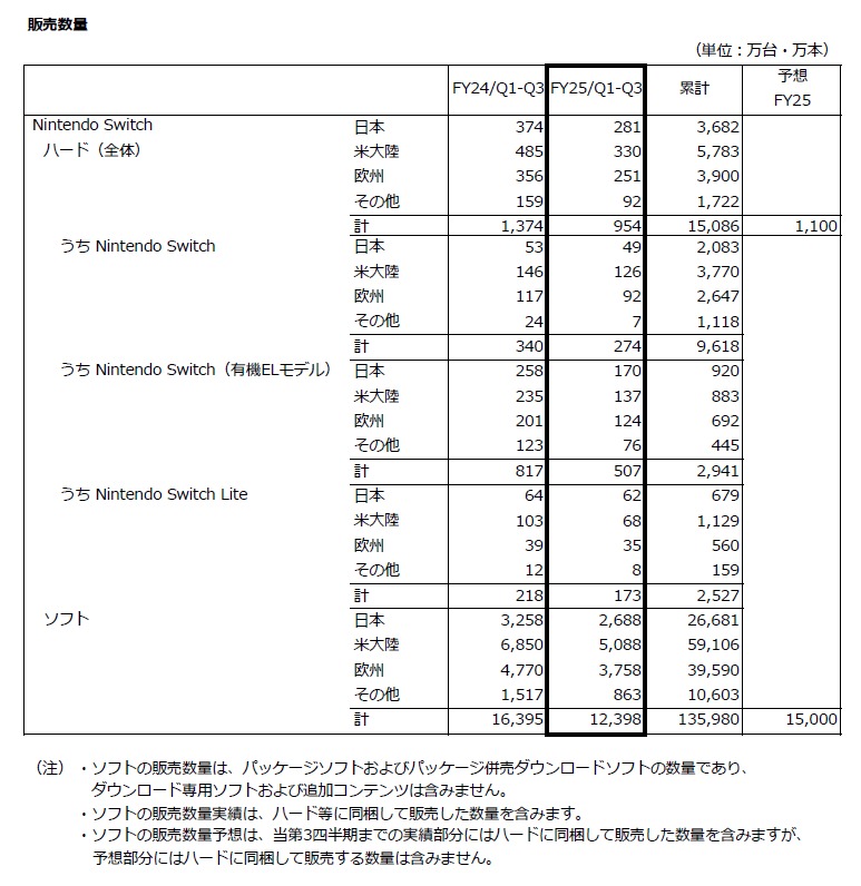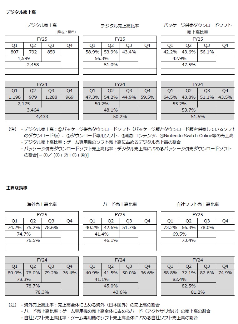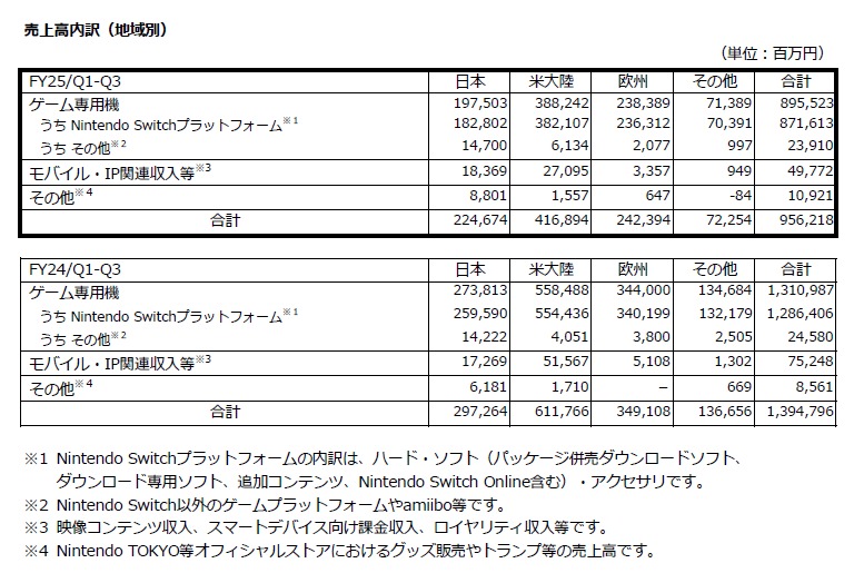 [任天堂: 2025年3月期第3四半期決算短信〔日本基準〕(連結) / 決算説明資料 / 通期業績予想及び配当予想の修正に関するお知らせ](pdf)