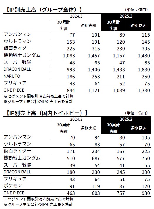 IP別売上高はこんな具合に、「ドラゴンボール」が好調ですね。