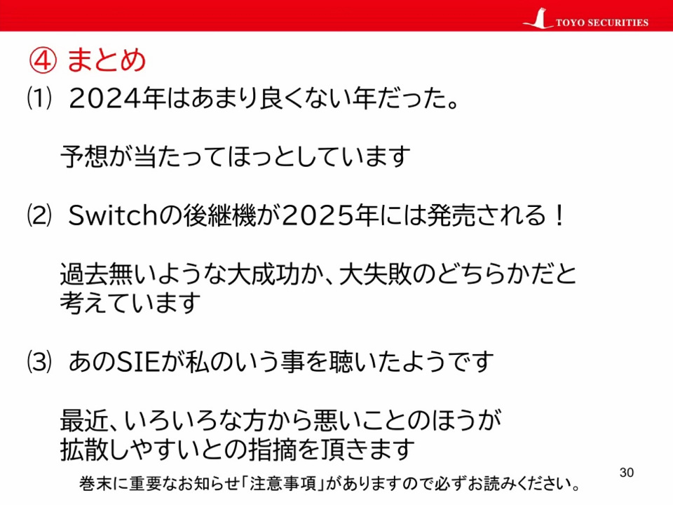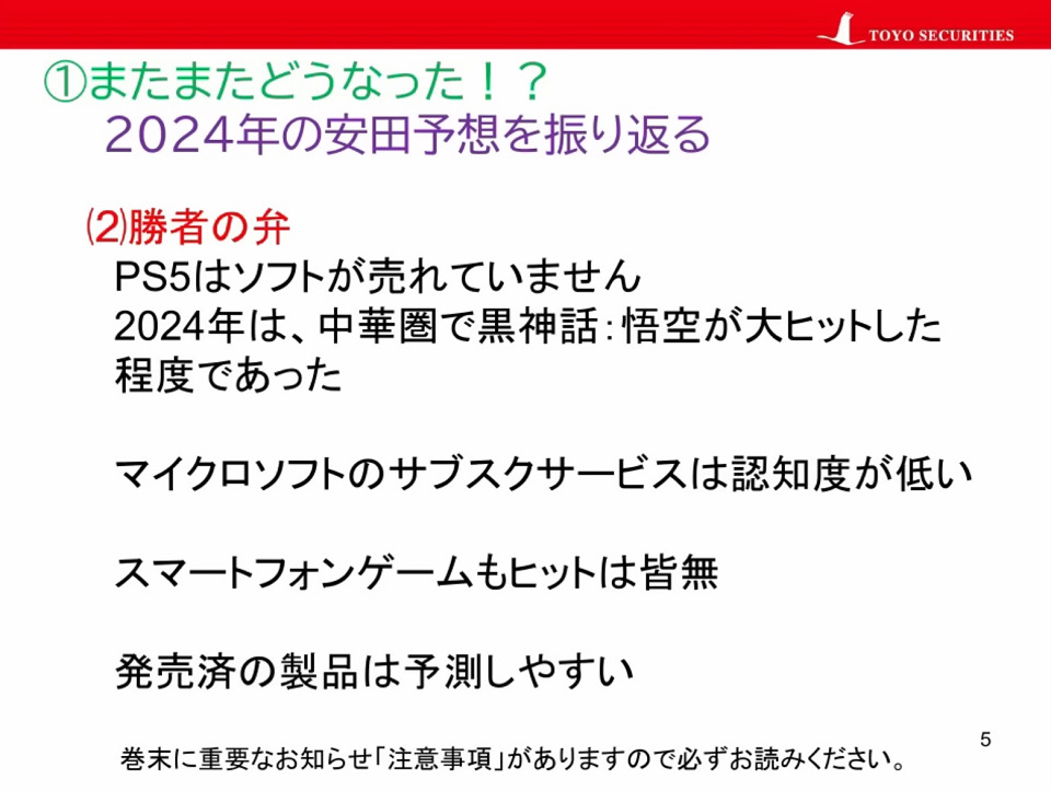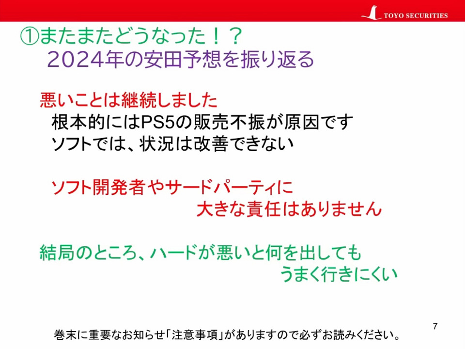[当ブログ: [聖典脳の恐怖]怪奇自称東洋証券男“2024年はPS5ソフトが売れないと言ったがその通りになった”等と決算をガン無視して謎の「勝者の弁」]