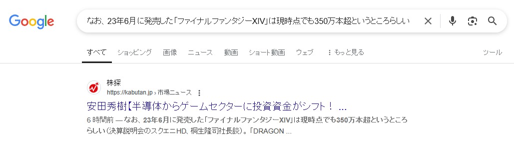 なお、23年6月に発売した「ファイナルファンタジーXIV」は現時点でも350万本超というところらしい(決算説明会のスクエニHD、桐生隆司社長談)。