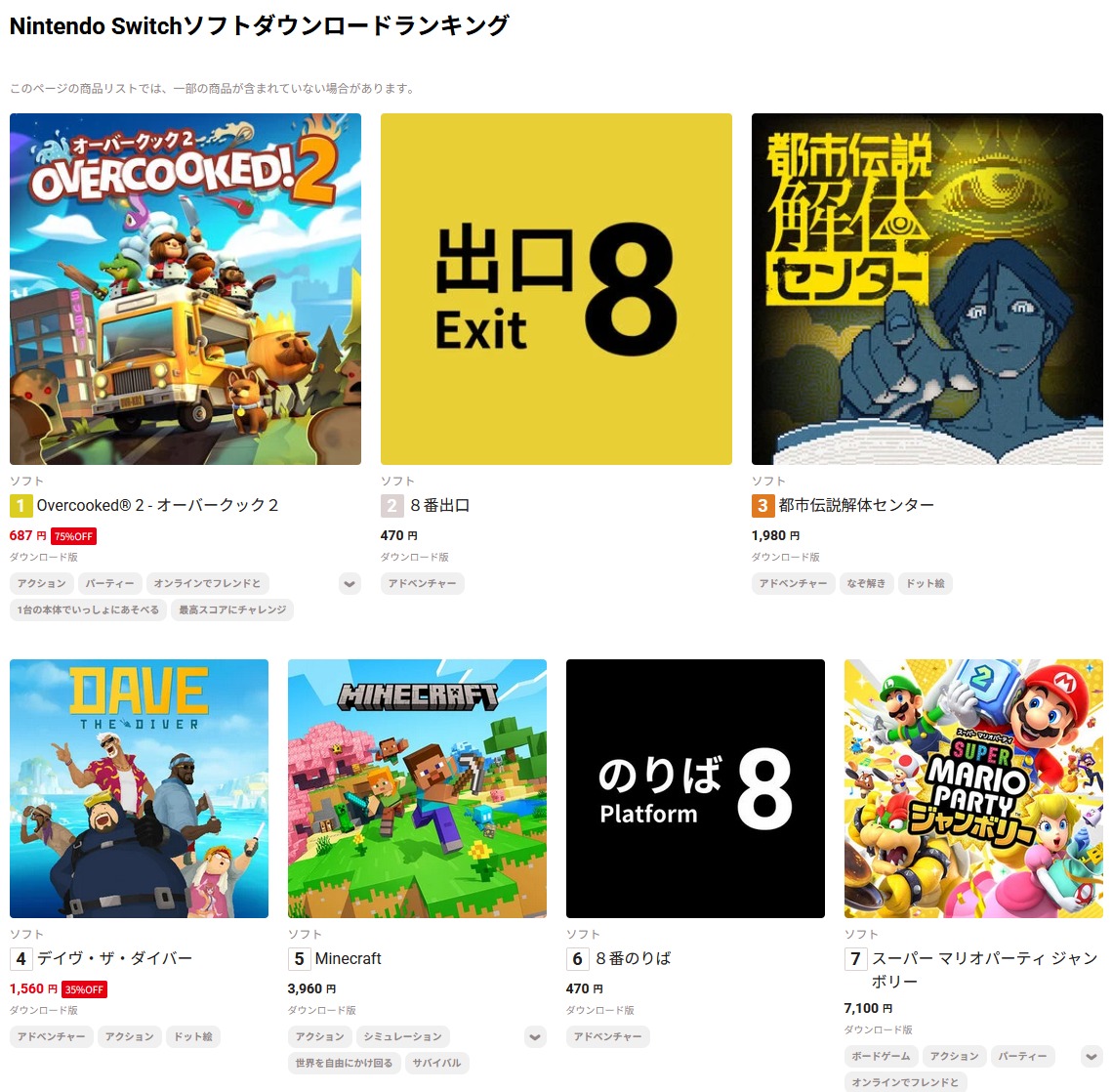 [My Nintendo Store: Nintendo Switchソフトダウンロードランキング]