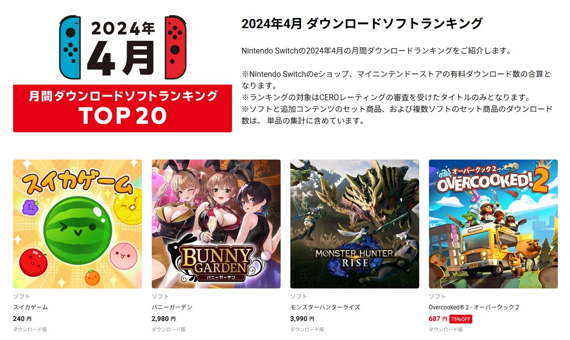[My Nintendo Store: 2024年4月 ダウンロードソフトランキング / (上半期/年間)ダウンロードランキング]