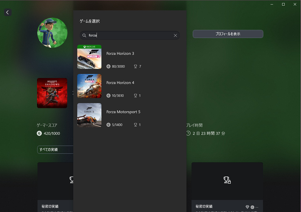 ぼんくら君のプレイしたゲームをForzaで検索したけど