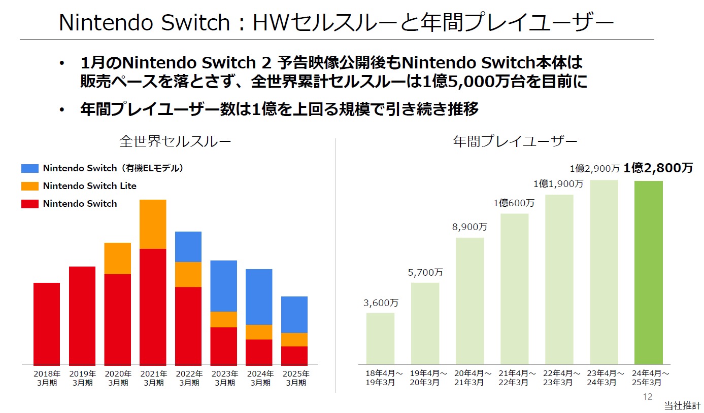 ついに任天堂独自のトンチキ指標、“年間プレイユーザー数”が減少に転じたようです。