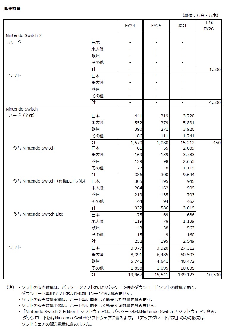 任ッチの実績である1080万台/1億5541万本に関しては…1四半期前の1100万台予想を下回ってますね。