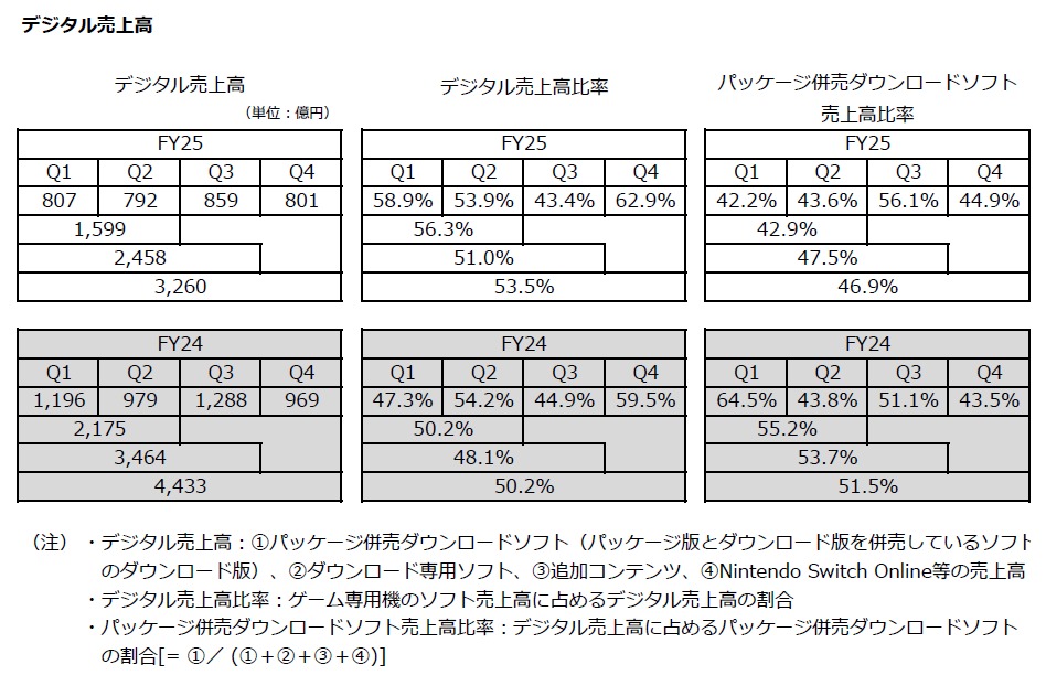 デジタル売上高は…どうなんでしょうね、ソフトがさっぱり売れていないからというのもありますがデジタル本数比率も1/4~三割程度になっているかも?