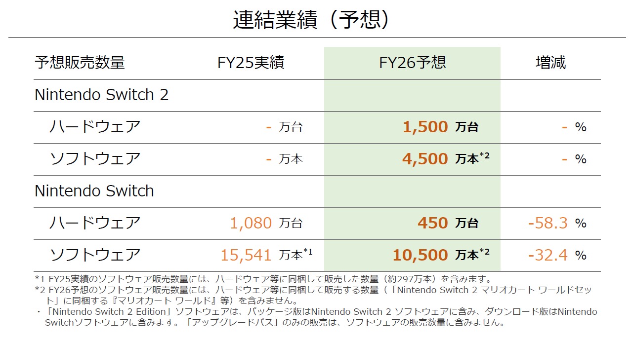任ッ2の通期販売(出荷)予想は1500万台/4500万本。